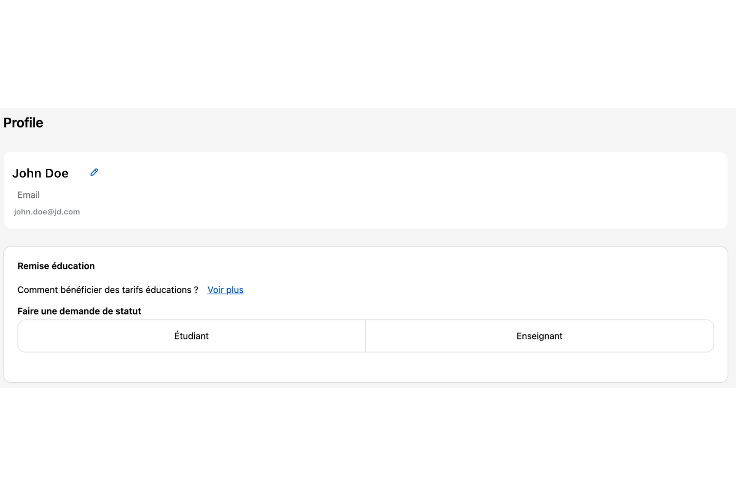 Demandez le changement de statut en sélectionnant 'étudiant' ou 'enseignant' et en important les documents justificatifs nécessaires.